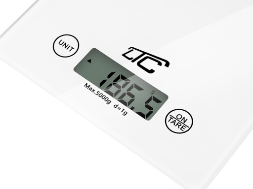 Precyzyjna, elektroniczna waga kuchenna LTC w kolorze białym.