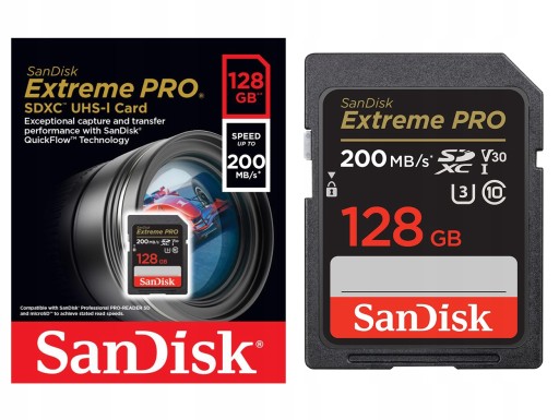 Opakowanie zawiera: 1 x kartę SanDisk Extreme PRO 128 GB
