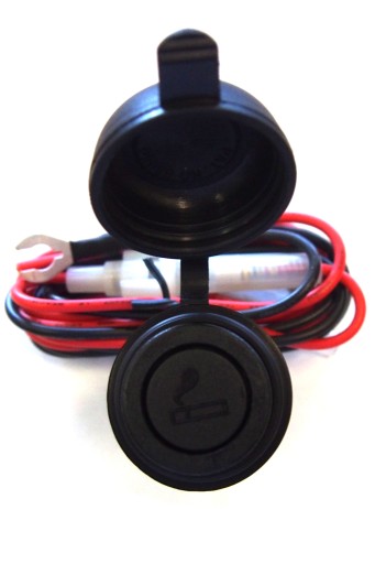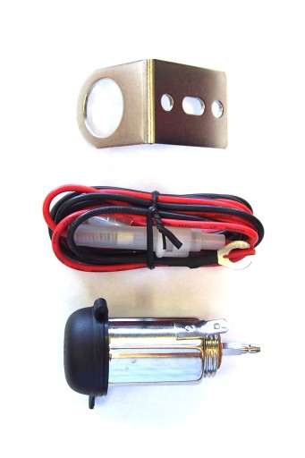Zestaw do montażu gniazda zapalniczki w pojeździe. Jest to kompletny zestaw z przewodami zabezpieczonymi bezpiecznikiem i mocowaniem gniazda.