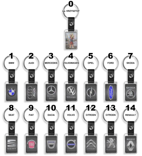 Grafika marki samochodu lub inna grafika z naszej galerii (dostępne wzory breloczków w dalszym opisie oferty)