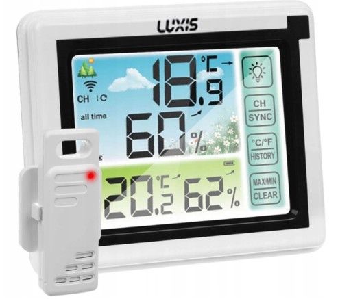 Dzięki funkcji multii room mamy możliwość podłączenia kilku czujników do jednej stacji pogody i wygodnego przełączania pomiędzy czujnikami.