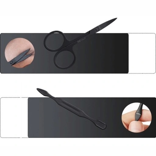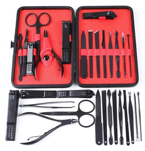 Każda kobieta potrzebuje praktycznych narzędzi, by mieć je zawsze pod ręką. Wewnątrz etui każde z narzędzi posiada wyodrębnione miejsce, co pozwala zachować ład i porządek, bez ryzyka zgubienia. Etui zamykane jest na zatrzask, a na zewnątrz posiada ciekawą, czarną strukturę, która spodoba się każdej kobiecie. Zestaw nadaje się również dla mężczyzn. Jest mały i poręczny. Zestaw nada się zarówno do dłoni jak i do stóp.