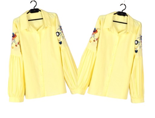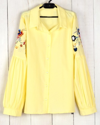 - Bardzo modna klasyczna koszula z haftowanymi kwiatami na rękawach