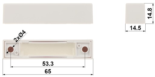 Detekcja: Otwarcie drzwi lub okna ; Maksymalne napięcie przełączalne kontaktronu: 48 V ; Maksymalny prąd przełączalny: 500 mA ; Odległość zamknięcia styków kontaktronu: 37 mm Drewno / 24 mm Stal ; Odległość otwarcia styków kontaktronu: 40 mm Drewno / 25 mm Stal ; Wyjście sabotażowe; Kolor: Biały ;