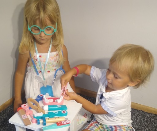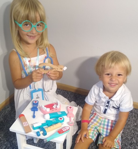 Zestaw zabawek dla lekarzy zawiera wystarczającą ilość medycznych, aby dziecko mogło odegrać rolę lekarza, pielęgniarki, dentysty lub pacjenta.