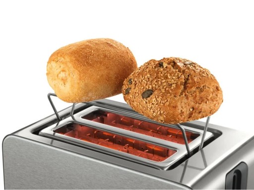 - Funkcje: Tacka na okruchy, Rozmrażanie, Automatyczne wyłączenie po zakończeniu opiekania, Ruszt do bułek