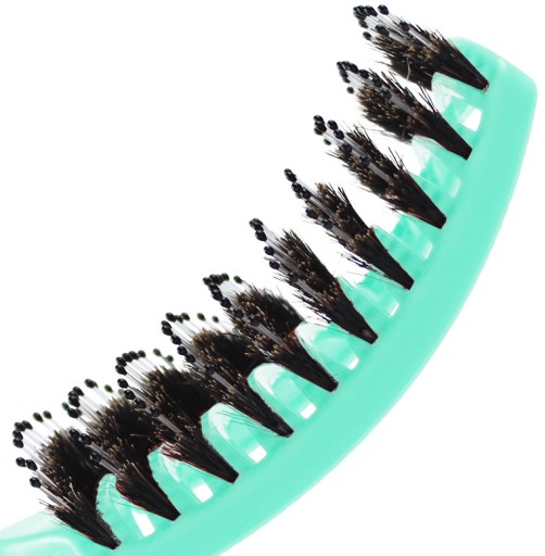 Powierzchnia rozczesująca szczotki jest odpowiednio szeroka oraz wygięta, aby właściwie dopasowywać się do anatomicznych kształtów głowy. Szczotka posiada gęsto rozstawione nylonowe igiełki rozczesujące, zakończone kuleczkami, dzięki czemu są łagodne dla skóry głowy i dodatkowo ją masują. Każda z igiełek jest osadzona w kępce naturalnego włosia z dzika, która w nieinwazyjny, ale skuteczny sposób rozczesuje włosy.