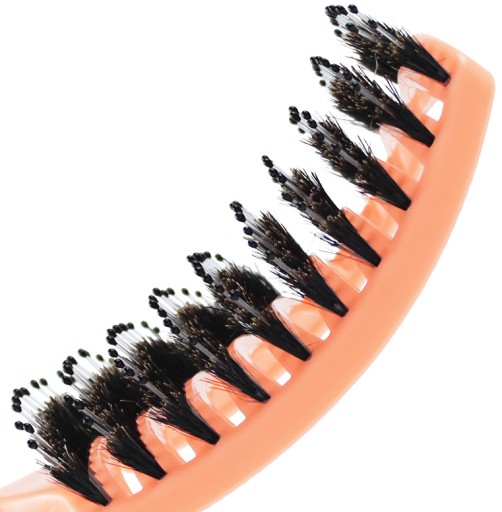 Powierzchnia rozczesująca szczotki jest odpowiednio szeroka oraz wygięta, aby właściwie dopasowywać się do anatomicznych kształtów głowy. Szczotka posiada gęsto rozstawione nylonowe igiełki rozczesujące, zakończone kuleczkami, dzięki czemu są łagodne dla skóry głowy i dodatkowo ją masują. Każda z igiełek jest osadzona w kępce naturalnego włosia z dzika, która w nieinwazyjny, ale skuteczny sposób rozczesuje włosy.