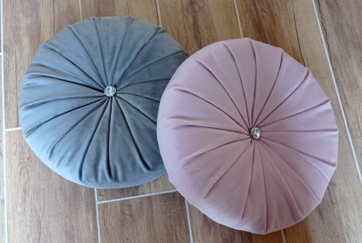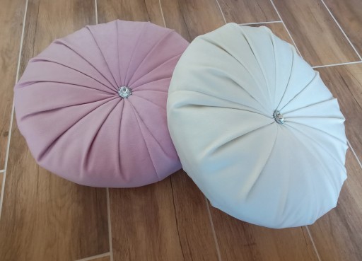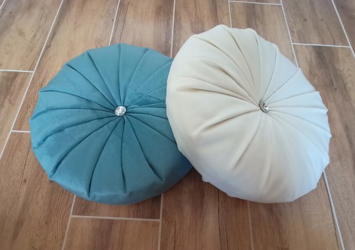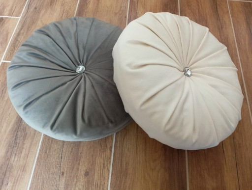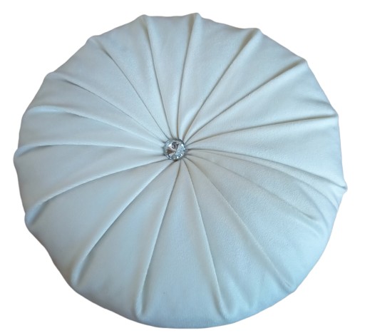 Oferujemy poduszki dekoracyjne o wymiarze 40cmx40cm w kolorze beżowym. Wykończone efektownym kryształkiem lub guzikiem obleczonym materiałem w kolorze poduszki. Wypełniona wypełnieniem poliestrowym.