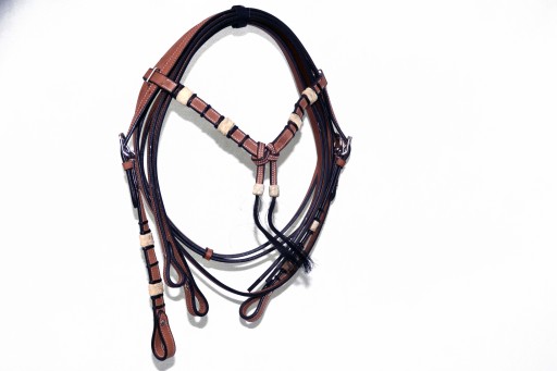 Ogłowie Western z USA +wodze roz. Full .Ogłowie wyprodukowane w zakładzie w Teksasie .Wykonane z najwyższej jakości skóry bydlęcej bardzo miękkiej i miłej w dotyku , naczółek i paski policzkowe zdobione .Ogłowie zapinane i regulowane jest na stabilne sprzączki , wykonane z bardzo dobrej nierdzewnej stali szlachetnej . Zapraszam do zakupu.
