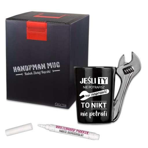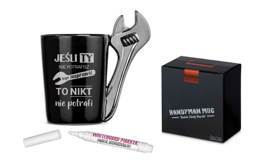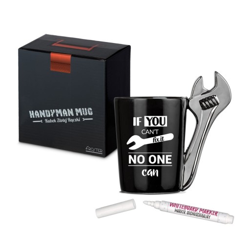 Napis na Kubku Złotej Rączki sprawi, że zrobi się cieplej na sercu każdemu – od dziadka pomocnego w naprawie samochodu, przez tatę, który skręcił nam biurko, aż po brata, który naprawił naszego laptopa. Mąż, który potrafi naprawić kapiący kran czy kolega pomocny w montowaniu półek, także chętnie napiją się z niego gorącej herbaty. Podaruj go na Dzień Ojca, Dzień Chłopaka, urodziny i na każdą inną okazję, podczas której chcesz podziękować naszej Złotej Rączce.