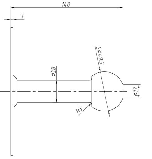 Wieszak posiada znormalizowaną kulę o średnicy 49,5mm, pasuje do wszystkich platform dostępnych na rynku. W zestawie nie ma śrub i kołków montażowych, ze względu na bezpieczeństwo należy je dobrać do rodzaju podłoża.