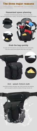 - Super praktyczna torba na nogi, którą można nosić na jednym ramieniu, talii lub udzie. Niezależnie od tego, czy jest to zakupy, jazda na rowerze, miasto, aktywności na świeżym powietrzu, torba na nogi jest łatwym w przenoszeniu Ważne jest to, że torba na nogi jest bardziej stabilna niż torba na biodra, antypoślizgowa i ma mniejszy nacisk niż torba na ramię. Torba na nogi wykorzystuje duże grupy mięśni nóg, aby łatwo podzielić całkowitą wagę, co pozwala uwolnić ręce i swobodnie poruszać się.