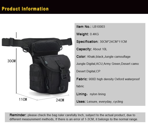 - Torba taktyczna na nogi w stylu wojskowym. Wielofunkcyjny, wodoodporny, odporny na zużycie, system MOLLE. Na zewnątrz, w górach, wspinaczka, jazda na rowerze, swobodny, wojskowy pakiet taktyczny. KOLOR ACU