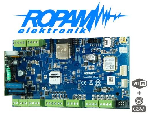 NeoGSM-IP-PS PŁYTA CENTRALA ALARMOWA 8-32 LINII ZASILACZ WIFI GSM ROPAM