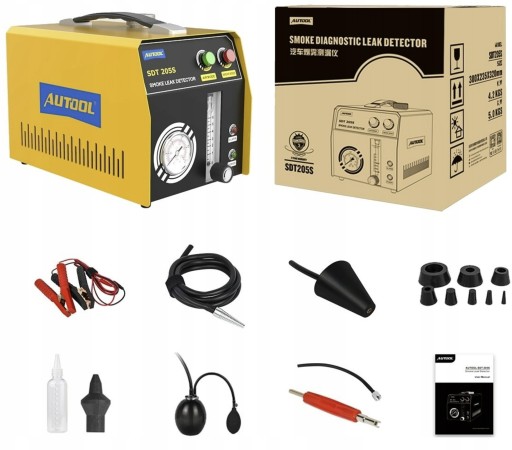 Profesjonalny automatyczny tester szczelności rur, węży, złączy, instalacji przy użyciu generatora dymu. Pomoże nam to w szybkim i dokładnym zlokalizowaniu wycieków w układach rurowych w ciągu kilku minut. Możliwość wykorzystania urządzenia przy testach układu dolotowego, test turbosprężarki, test układu wydechowego, test układu chłodzenia, test uszczelnienia samochodu, test układu zbiornika paliwa, test różnych złączek rurowych.
