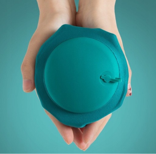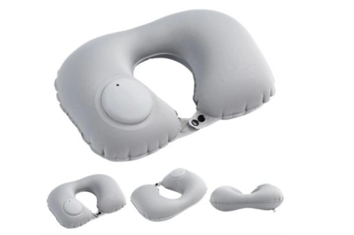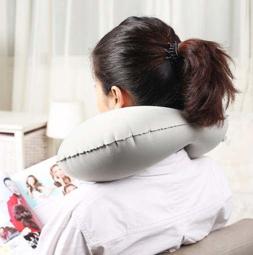 Łatwa do nadmuchania poprzez przyciśnięcie przycisku poduszka na kark i szyję, do stosowania zarówno w domu jak i w podróży, która po złożeniu zajmuje niewiele miejsca - tyle co sam przycisk o średnicy 9 cm.
