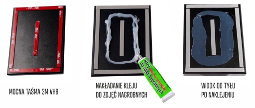 Wyciskamy klej jak na zdjęciu poniżej - grubość warstwy kleju to 3mm. Następnie przykładamy zdjęcie do pomnika i mocno dociskamy około 60 sekund.