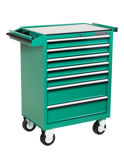 - szafka serwisowa wyposażona w 7 szuflad osadzonych na prowadnicach łożyskowanych kulkowo - płyny i równomierny ruch szuflad nawet przy pełnym obciążeniu