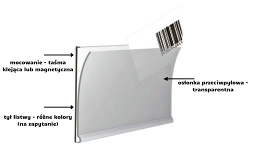 ↕ WYSOKOŚĆ OSŁONKI ETYKIETY: 60 mm (możliwość wyprodukowania listew 26 / 30 / 39 / 52 / 100 mm).