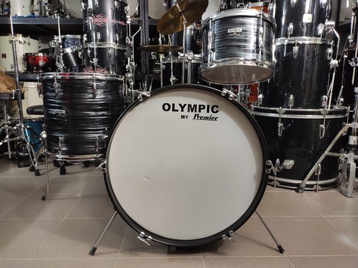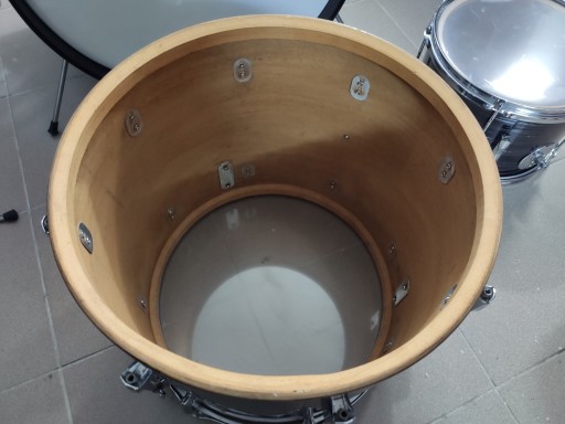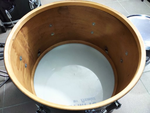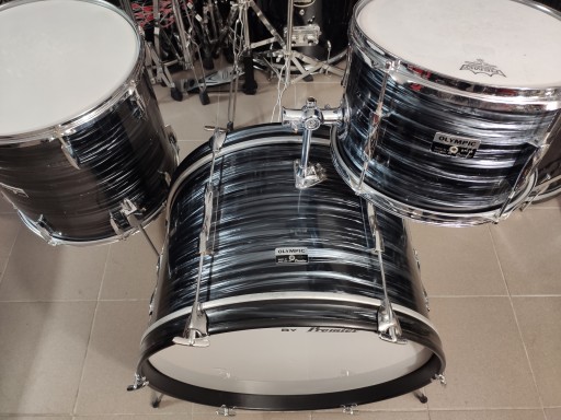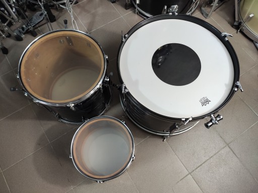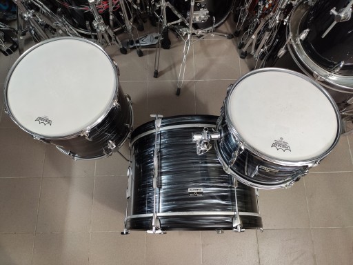 Rozmiary bębnów to 22", 12", 16". Zestaw jest w bardzo ładnym stanie jak na swoje lata, nosi ślady normalnego użytkowania. Bębny nie posiadają żadnych ukrytych wad i są w pełni oryginalne. Korpusy są zdrowe, wykonane z mahoniu z bukowymi obręczami wzmacniającymi. Naciągi są w dobrym stanie. Piękny stary zestaw z charakterem.