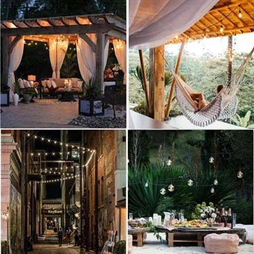 【Łańcuch świetlny na zewnątrz z 25 żarówkami】 Ta bajkowa lampa składa się z 25 wysokiej jakości wodoodpornych żarówek o łącznej długości 760 cm, z odległością między dwoma żarówkami 30,5 cm. Może stworzyć przytulną i świąteczną atmosferę dla Ciebie i Twojej rodziny. Nadaje się na ślub, urodziny, boże narodzenie, Halloween, dekoracja wnętrz na zewnątrz