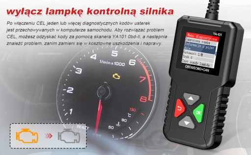 Właściciele samochodów często spędzają dużo czasu i pieniędzy w centrach serwisowych. Kontrolka Check Engine informuje, że coś nie działa prawidłowo. Ale nie znasz dokładnego problemu, więc nie możesz określić, czy jest to coś, co możesz łatwo naprawić, czy potrzebuje eksperta Nie możesz też określić, ile to będzie kosztować, dopóki serwis nie wystawi Ci ogromnego rachunku.Z urządzeniem YA101 możesz samodzielnie zdiagnozować problem z Twoim pojazdem.
