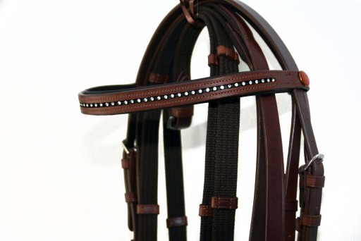 Ogłowie +Wodze Anatomiczne profilowane roz. full.Ogłowie wyprodukowane w zakładzie Rymarskim w Anglii .Wykonane z najwyższej jakości skóry bydlęcej bardzo miękkiej i miłej w dotyku , część potyliczna i naczółek poszyty miękko skórą ,aby zapobiec obtarciom .Ogłowie zapinane i regulowane jest na stabilne sprzączki , wykonane z bardzo dobrej nierdzewnej stali szlachetnej . Zapraszam do zakupu.