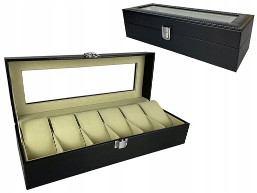 SZKATUŁKA KASETKA NA ZEGAREK BIŻUTERIĘ 6 PRZEGRÓDEK