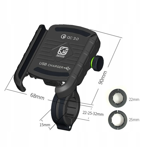 ДЕРЖАТЕЛЬ ДЛЯ ТЕЛЕФОНА ЗАРЯДНОЕ УСТРОЙСТВО ДЛЯ МОТОЦИКЛА USB 3.0 QC СЕРЫЙ