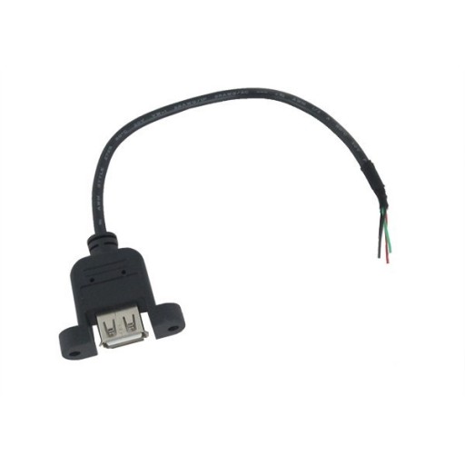 Gniazdo USB typu A montowane do obudowy może być zamontowane w samochodzie, motocyklu, urządzeniach, radiach. Posiada 4 żyłowy przewód o długości 30cm. Mocowane jest za pomocą 2 śrub M3 (brak w zestawie)