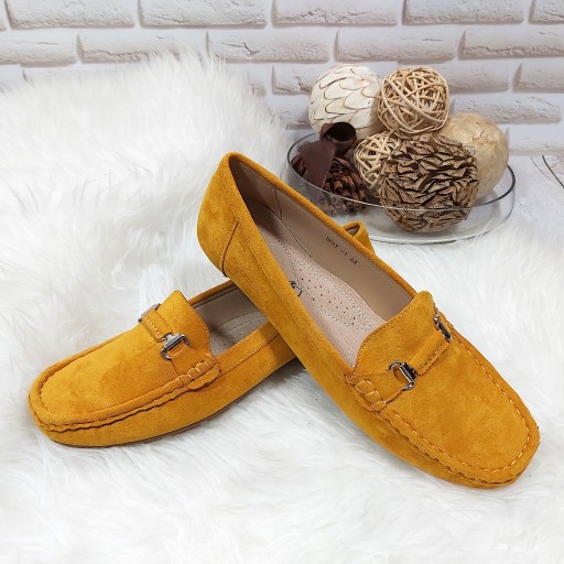 Wykonane z miękkiego ekologicznego zamszu w pięknym miodowym kolorze. Miękka wkładka z naturalnej skóry zadba o komfort w trakcie długiego chodzenia. Elastyczna podeszwa. Uniwersalny, klasyczny design będzie doskonałym dopełnieniem codziennych stylizacji.