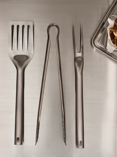 - W zestawie: szczypce, łopatka i widelec do grilla.