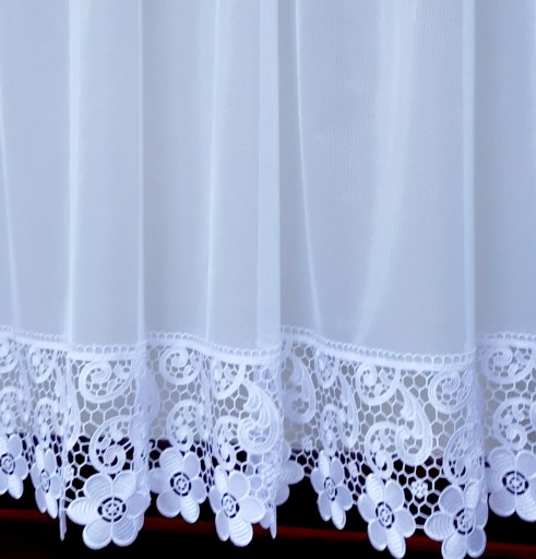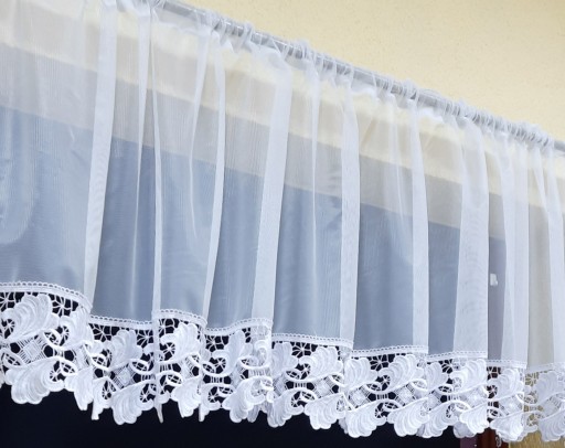 Biel i lekkość markizety oraz szeroka 15cm gipiura pozwolą dopełnić wystrój wnętrza zarówno klasycznego jak i nowoczesnego. Firana doda elegancji dzięki delikatnej krateczce, która nie zabierze jasności dnia, a sprawi, że pomieszczenia będą przytulne i jasne.