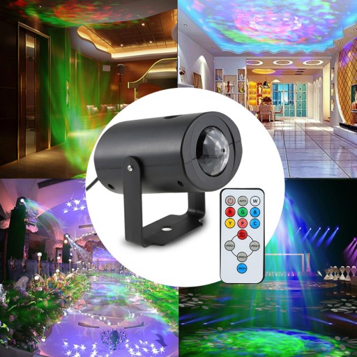 Ten mini LED etap światło o fali wody odzew może przynieść wspaniałe efekty wizualne. Automatycznie uruchomiony, kolor statyczne i tryb lampy błyskowej RGB zrobić to bardzo praktyczne w użyciu, a to naprawdę idealnym miejscem, aby Państwa etapem kolorowe i radosne.