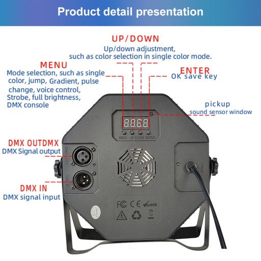 Elastyczne 4 tryby sterowania: DMX512, master slave, aktywacja dźwiękiem, automatyczne uruchamianie w celu uzyskania przyjemnej wydajności.