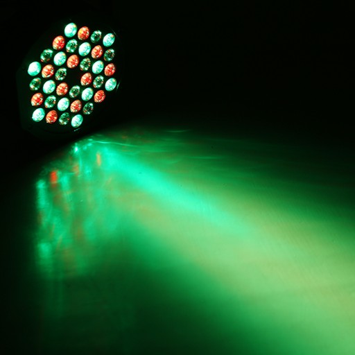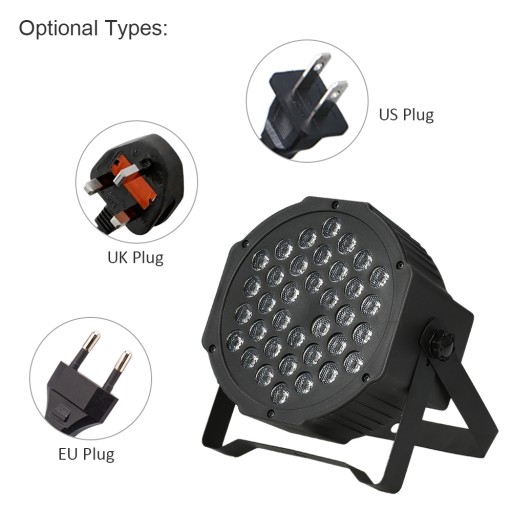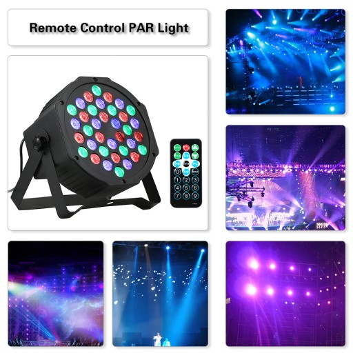 Cechy: 100% nowy i niezawodny w jakości. 36 sztuk diod LED o wysokiej jasności wytwarza ultra jasne kolorowe światło. Wygodny pilot do ustawiania różnych efektów świetlnych, regulowana jasność. 4 elastyczne tryby sterowania: Obsługa trybu automatycznego, aktywowanego dźwiękiem, DMX512 i master-slave, łatwa w użyciu. Wbudowany wentylator zapewnia szybsze chłodzenie i wysoką wydajność. Tworzy różnorodne niesamowite efekty świetlne do oświetlenia sceny, baru, pubu lub imprezy. Mały i lekki, może być łatwo przenoszony tam, gdzie odbywa się impreza i zajmuje niewiele miejsca.