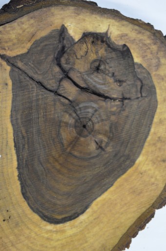 Zdjęcia robimy od razu po przecięciu, żeby jak najlepiej pokazać w jaki sposób można wyprowadzić plaster i podkreślić jego strukturę. W procesie suszenia naturalną rzeczą są pęknięcia materiału powstałe w skutek oddawania wilgoci oraz powierzchowna zmiana barwy. Jedno ze zdjęć pokazuje aktualny stan plastra z początku sierpnia.