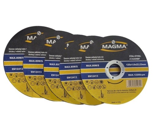 Tarcze do cięcia metalu stali - zestaw 5 sztuk 125x1,0 marki Magma.