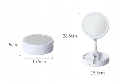 - Jest główną zaletą produktu. Dzięki świetle jesteśmy w stanie lepiej widzieć naszą twarz co ułatwi nam nałożenie makijażu czy założenie szkieł kontaktowych. Aby je włączyć należy nacisnąć przycisk znajdujący się na podstawie lusterka.