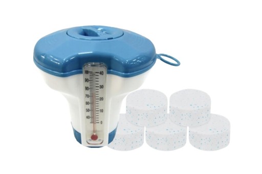 Dozownik ułatwia utrzymanie czystej wody w basenie. Służy do dozowania chemii basenowej bądź innych preparatów pomagających utrzymać czystość i higienę wody. Wykonany jest z mocnego oraz wytrzymałego tworzywa sztucznego ABS. Jest odporny na chlor i promienie UV.