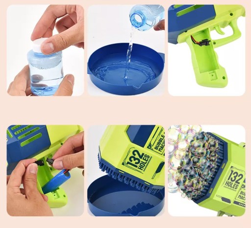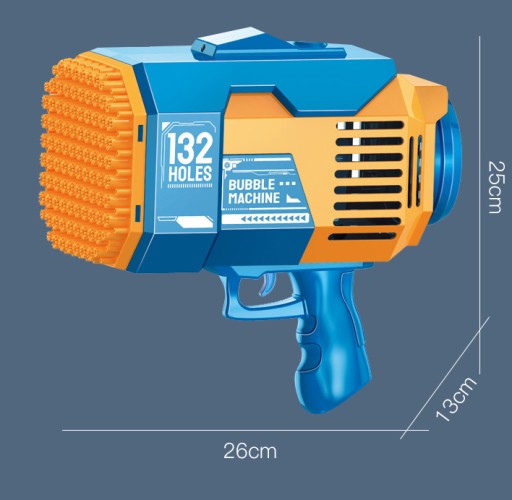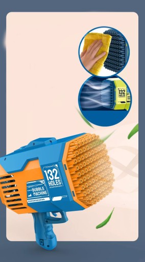 Niesamowity pistolet do produkcji baniek mydlanych, który po naciśnięciu na spust puszcza mnóstwo mieniących się bąbelków.