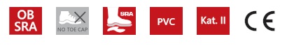 Kalosze posiadają certyfikat CE i spełniają normę ISO 20347:2011.