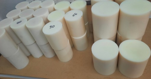 (Zdjęcie poglądowe przedstawiające rzeczywisty towar z naszego magazynu, różne średnice, rodzaje wałków oraz przykładowe detale/wyroby jakie można wykonywać z poliamidów)