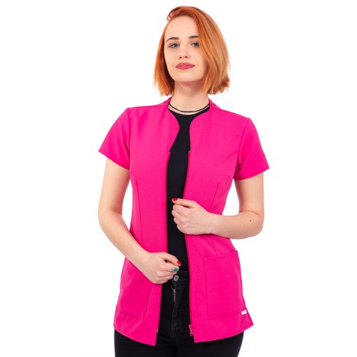 PLAMOODPORNY Fartuch DAMSKI Fryzjerski Kosmetyczny zamek L czarny róż biały