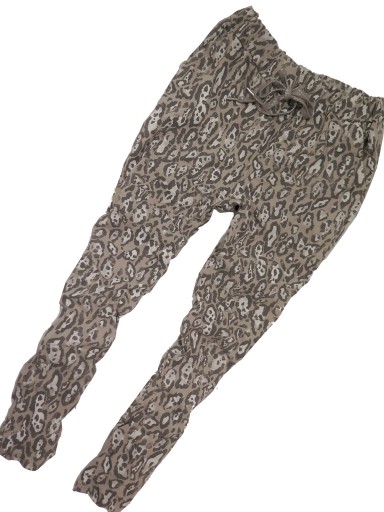 FASON: rewelacyjnie skrojone, lekkie baggy, na gumkę i troczek ze srebrną nitką w pasie wygodne, oryginalny krój, bardzo kobiece, kieszenie z przodu, bez kieszeni z tylu, fason imperial, nogawki zwężane, rurki idealne do podwinięcia.