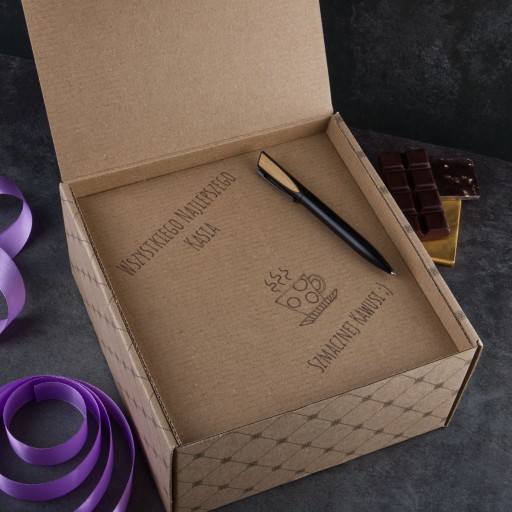 Unikalne opakowanie prezentowe nada upominkowi wyjątkowego charakteru, a Ty zaoszczędzisz czas przeznaczony na szukanie odpowiedniej dla niego oprawy. Dzięki takiemu rozwiązaniu nie musisz posiadać specjalnych zdolności artystycznych, by zaskoczyć swoich bliskich. Wszystkie niezbędne elementy znajdziesz w otrzymanym od nas pudełku. Możesz jednak wzbogacić podarunek ulubionymi łakociami, ziarnami aromatycznej kawy czy kompozycją herbat. Spersonalizuj go za pomocą osobistych życzeń, interesującej sentencji lub cytatu. Osoba, do której trafi tak przygotowany prezent na pewno doceni zaangażowanie i czas, które zostały włożone w jego przygotowanie.