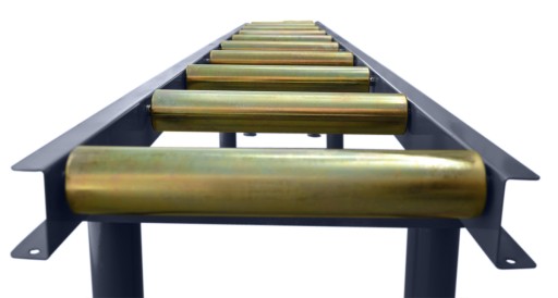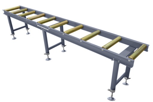 Podajnik rolkowy z możliwością regulacji wysokości. Podajnik wyposażony w wytrzymałe stalowe łożyskowane rolki.