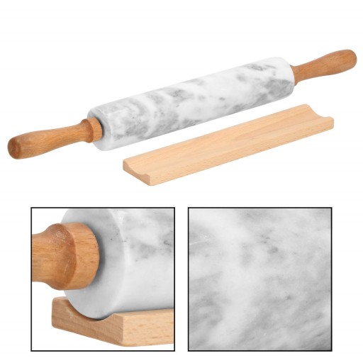 KAMIENNY WAŁEK DO CIASTA MARMUROWY 46cm + PODSTAWKA