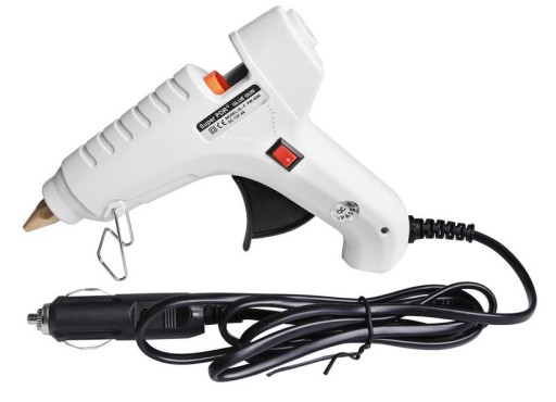 Pistolet do kleju 12 V z zasileniem z gniazda zapalniczki samochodowej o mocy 40W szybko rozgrzeje klej i umożliwi pracę, a jednocześnie nie rozładuje akumulatora.